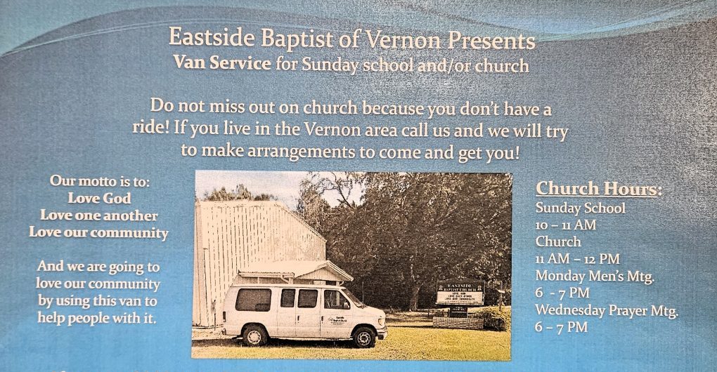 We are a small church located in Vernon, Florida. The church is approximately 2 miles northeast of downtown Vernon on Hwy 277 heading towards Chipley.
