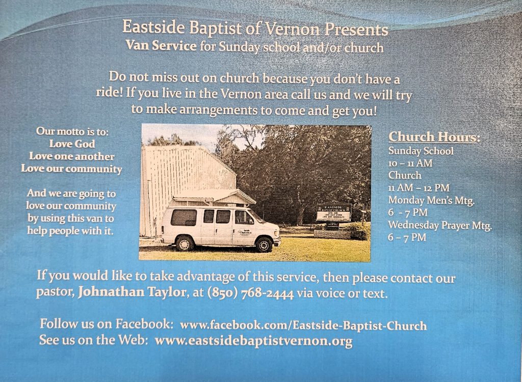 WELCOME TO THE HOME PAGE OF EASTSIDE BAPTIST CHURCH OF VERNON, FLORIDA!