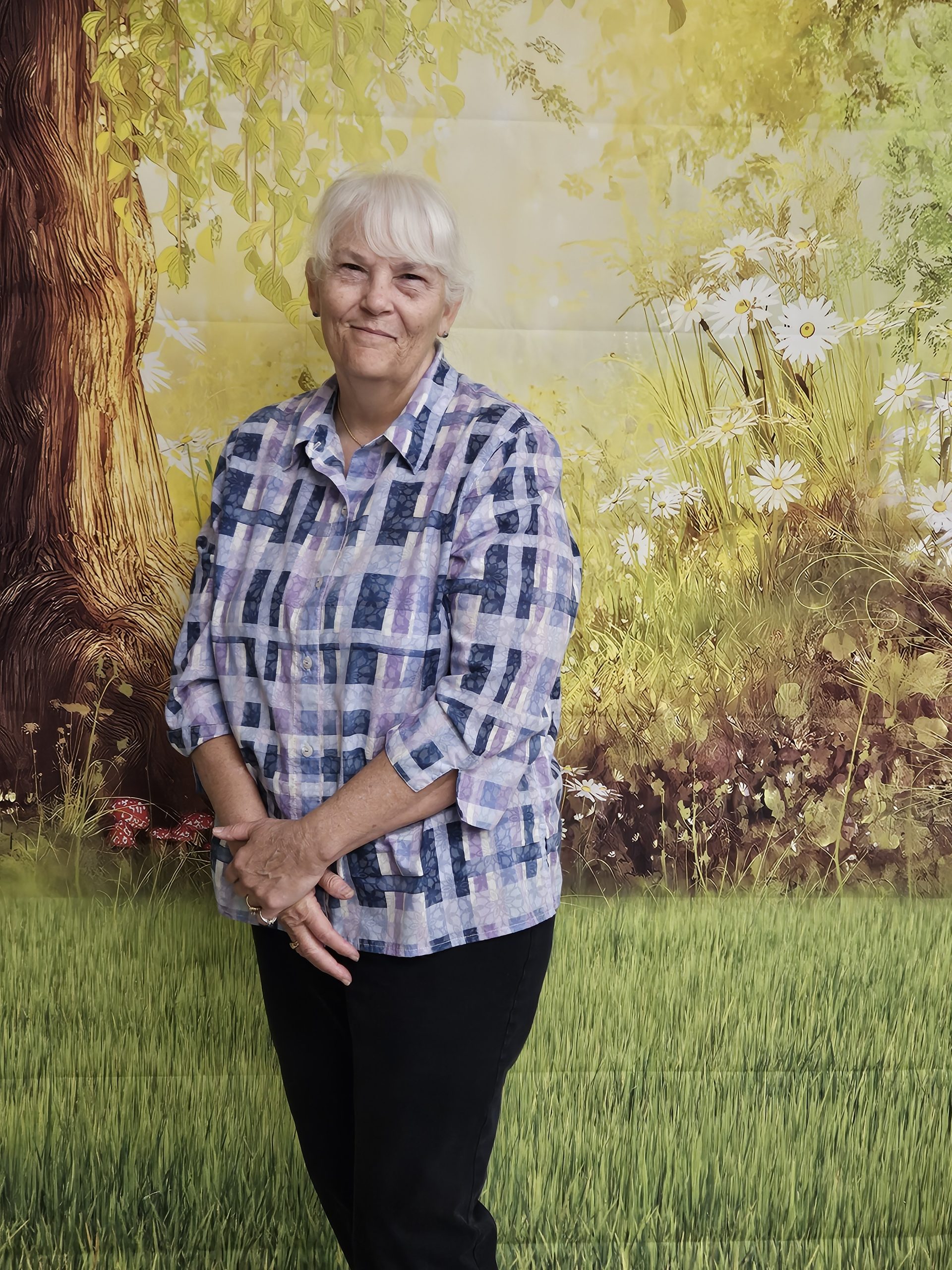 With many, many years of experience, she remains dedicated to the job of Secretary. Her gifts include singing, collecting funds, and the Sewing Ministry.